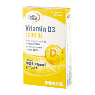 قرص ویتامین D3 1000 واحد یوروویتال بسته 60 عددی