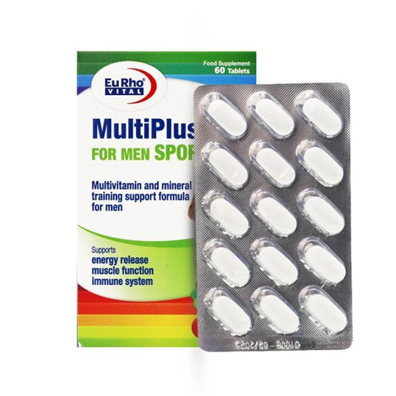 قرص مولتی ویتامین مینرال ورزشی 60 عددی یوروویتال مدل مولتی پلاس فور من اسپرت با آنتیاکسیدان جینسینگ و کوآنزیم کیوتن، آمینو اسیدهای ال-آرژینین، ال-تیروزین، ال-کارنیتین، افزایش انرژی، بهبود عملکرد ورزشی و تحریک عضلهسازی