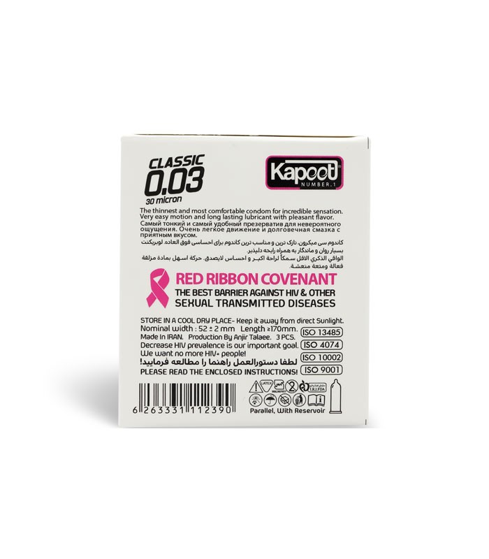 کاندوم بسیار نازک کاپوت Kapoot مدل Classic 0.03 - بسته 3 عددی