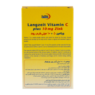 کپسول یوروویتال مدل Vitamin C Plus Zink 10 میلی گرم بسته 60 عددی